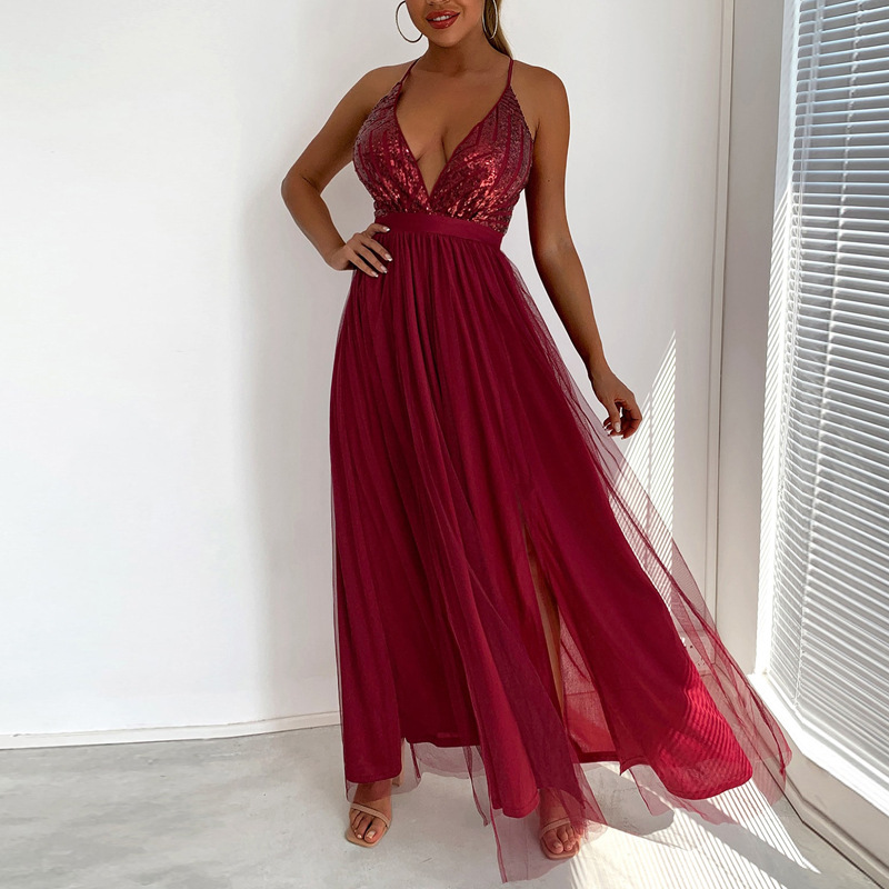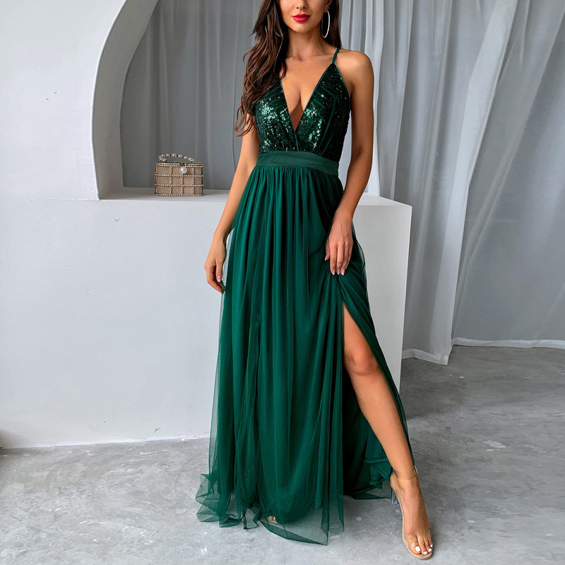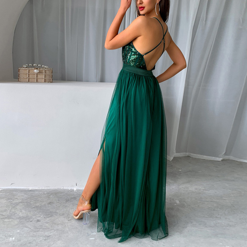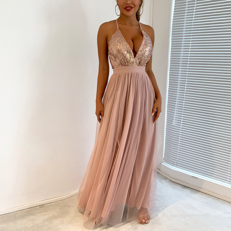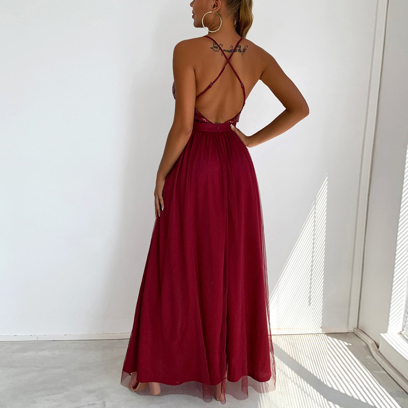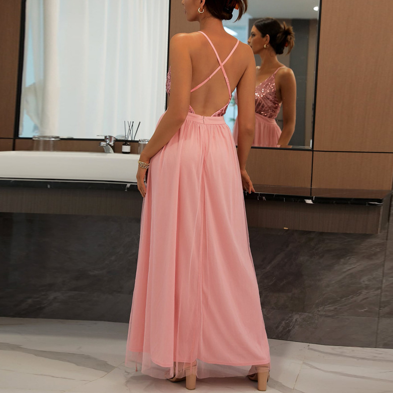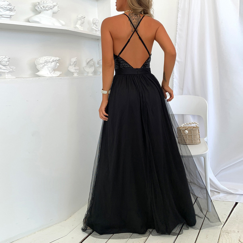 Be the first to review “A Deep V-neck Backless Evening Dress”